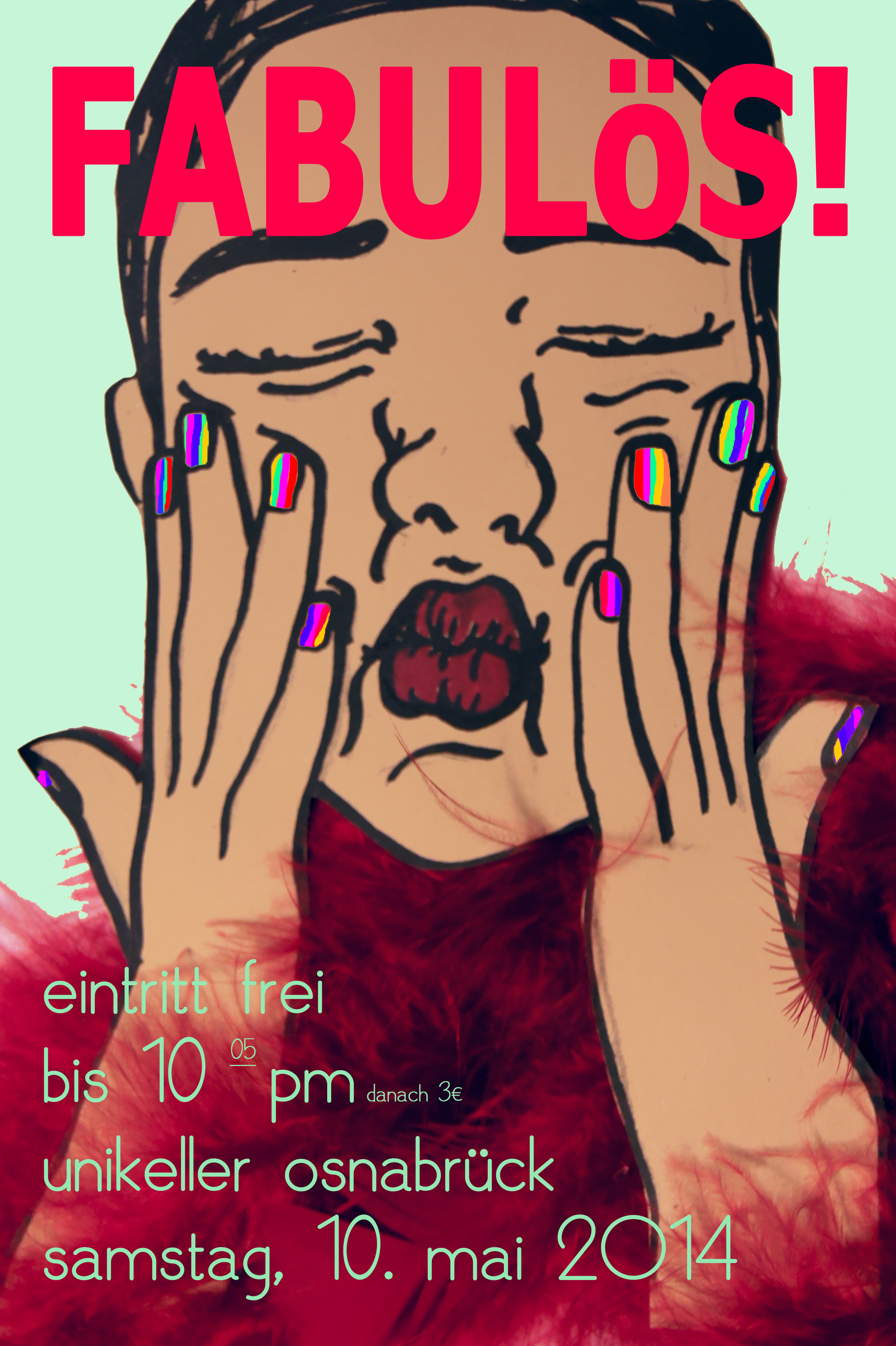 • Die erste FABULÖS-Party - eine antirassistische, queere Party mit Awarenessteam, Dragshow, Ausstellung und elektronischer Musik im Unikeller. Am 22.02.2014. Eintritt bis 22:22 Uhr frei, danach 3€.
