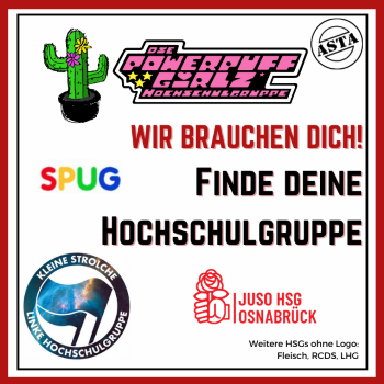 Schaut doch mal auf stura.uos.de/hsg vorbei und lernt die Hochschulgruppen kennen!